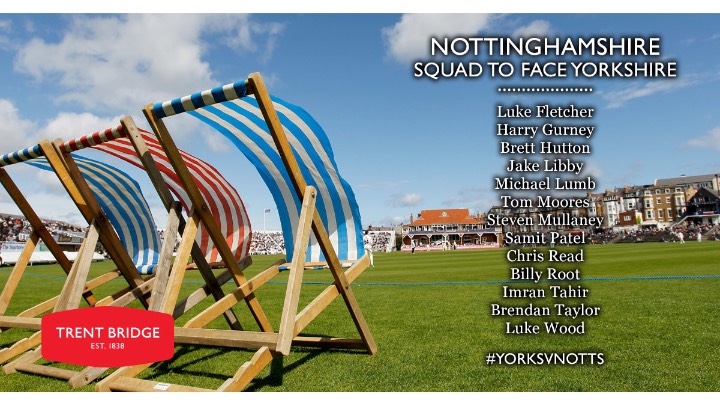 Nottinghamshire squad to face Yorkshire (from): Luke Fletcher, Harry Gurney, Brett Hutton, Jake Libby, Michael Lumb, Tom Moores, Steven Mullaney, Samit Patel, Chris Read, Billy Root, Imran Tahir, Brendan Taylor and Luke Wood.
