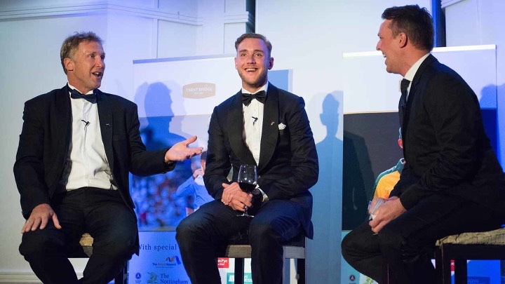 Stuart and Chris Broad, together with former Notts and England off-spinner Graeme Swann, provided rich entertainment to the 160 gathered guests at the black tie event in the Derek Randall Suite.
