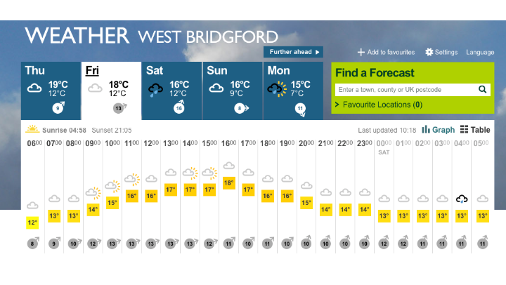 The weather for Trent Bridge looks set fair for the NatWest T20 Blast opener against the Birmingham Bears, dry throughout with highs of 18 degrees.