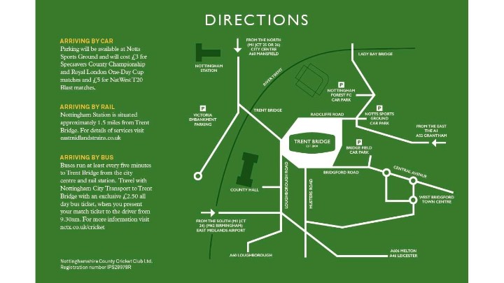 Car Parking for spectators is available priced at £3 (£2 for Nottinghamshire County Cricket Club Members) at Notts Sports Ground (Lady Bay, postcode NG2 5AA).