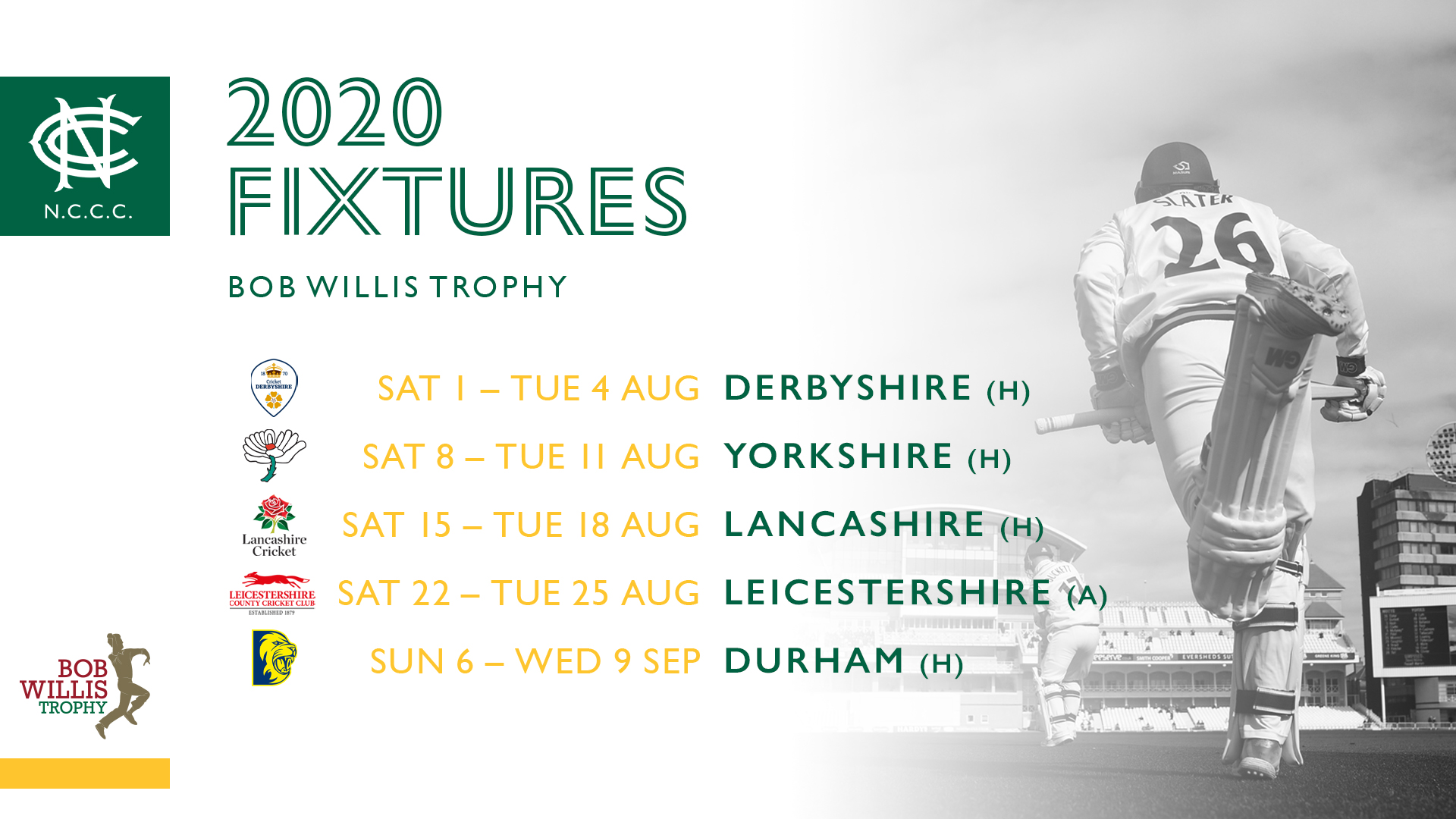Notts then face Lancashire, before their North Group campaign concludes with a fixture against Leicestershire and an encounter with Durham at Trent Bridge.