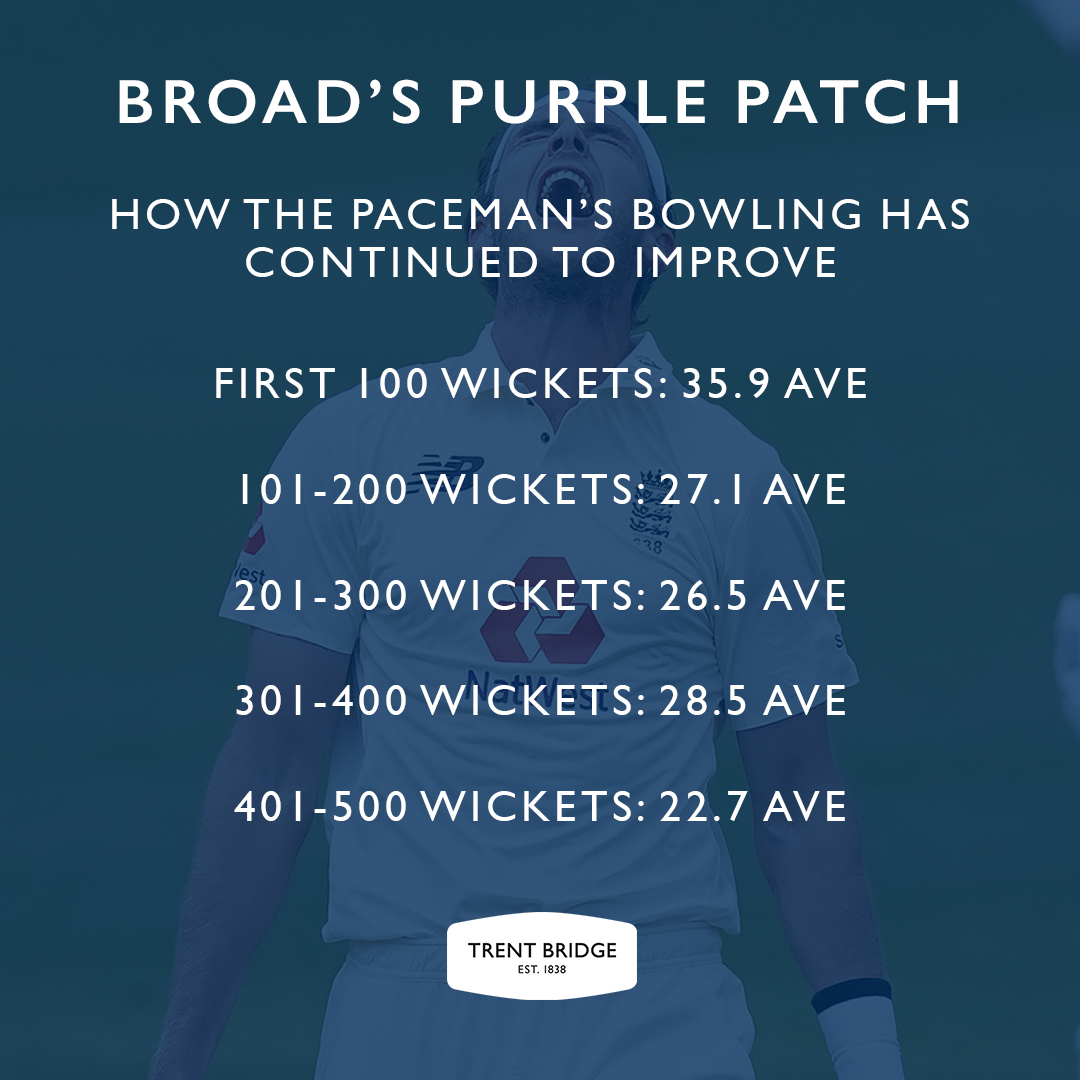 Broad’s last 100 wickets have come at a better average than at any point in his career, and he sees no reason why he can't continue to improve.