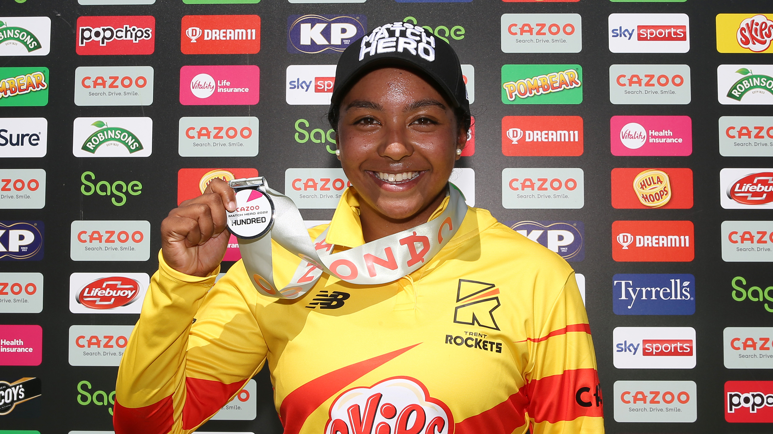Alana King took the first hat-trick in the history of The Women’s Hundred as the Trent Rockets comfortably beat the Manchester Originals by 43 runs at Emirates Old Trafford.