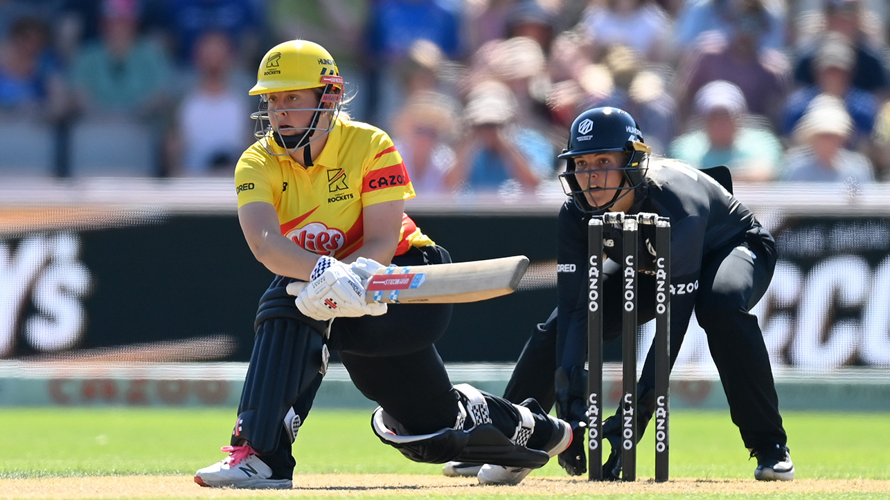 She was assisted by King’s aggressive 19, including two big sixes over midwicket – the only maximums of the innings – to drag the Rockets to what looked an under par 119 for five wickets from their hundred balls.