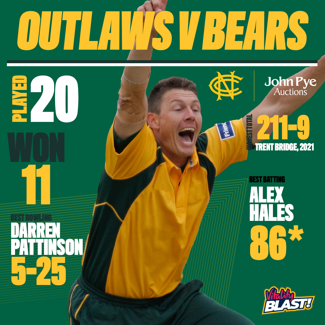 As is the case in the overwhelming majority of Notts' inter-county rivalries, the Outlaws hold the upper hand over the Bears in T20 cricket.