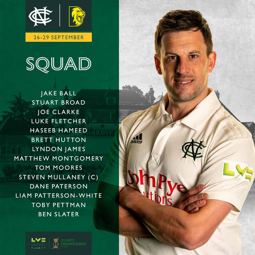 Stuart Broad returns to the squad for the clash against the North East outfit.