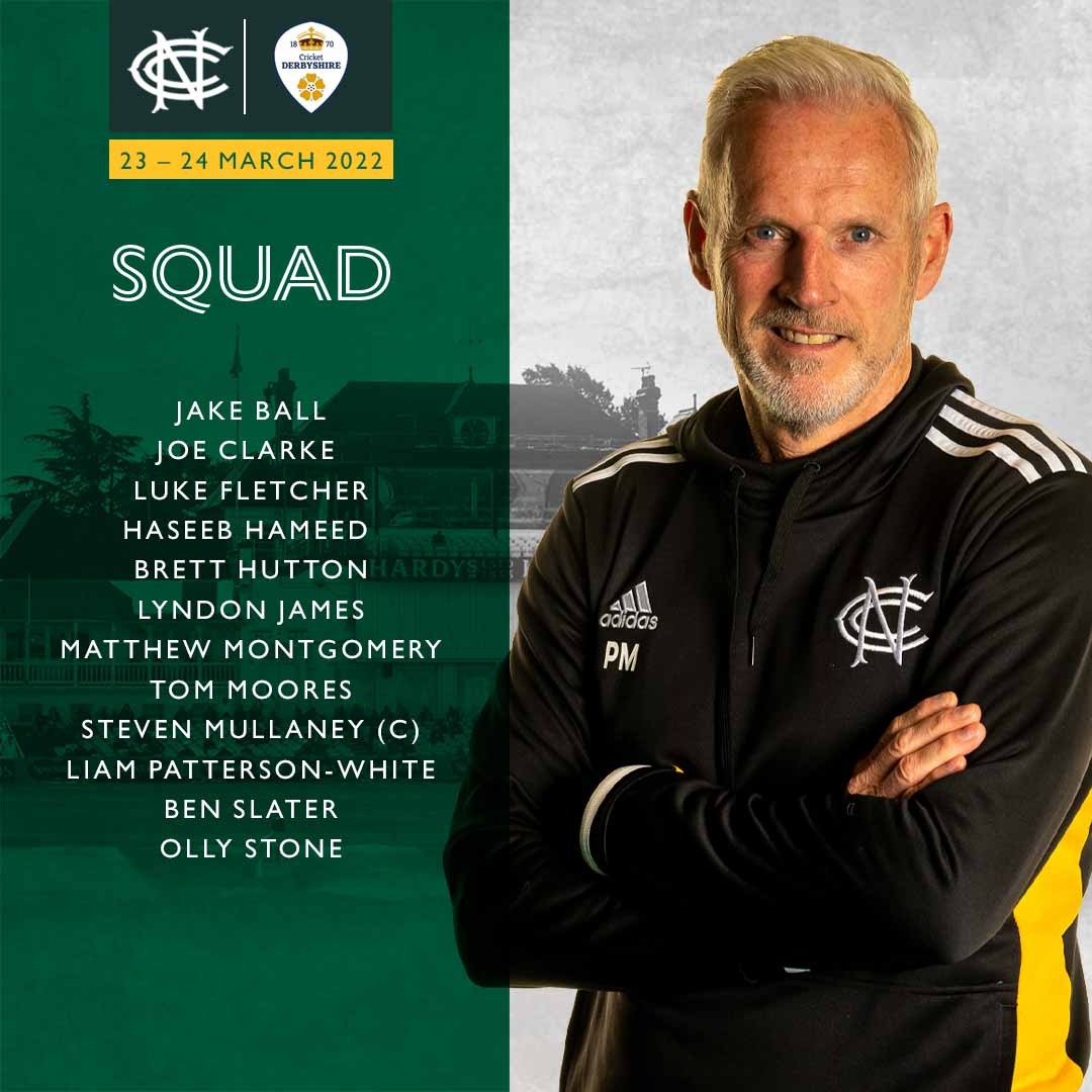 A squad of 12 has been named for the game against the Green and Golds’ East Midlands neighbours, with new recruit Olly Stone set to don Nottinghamshire colours for the first time since making the move to Trent Bridge.