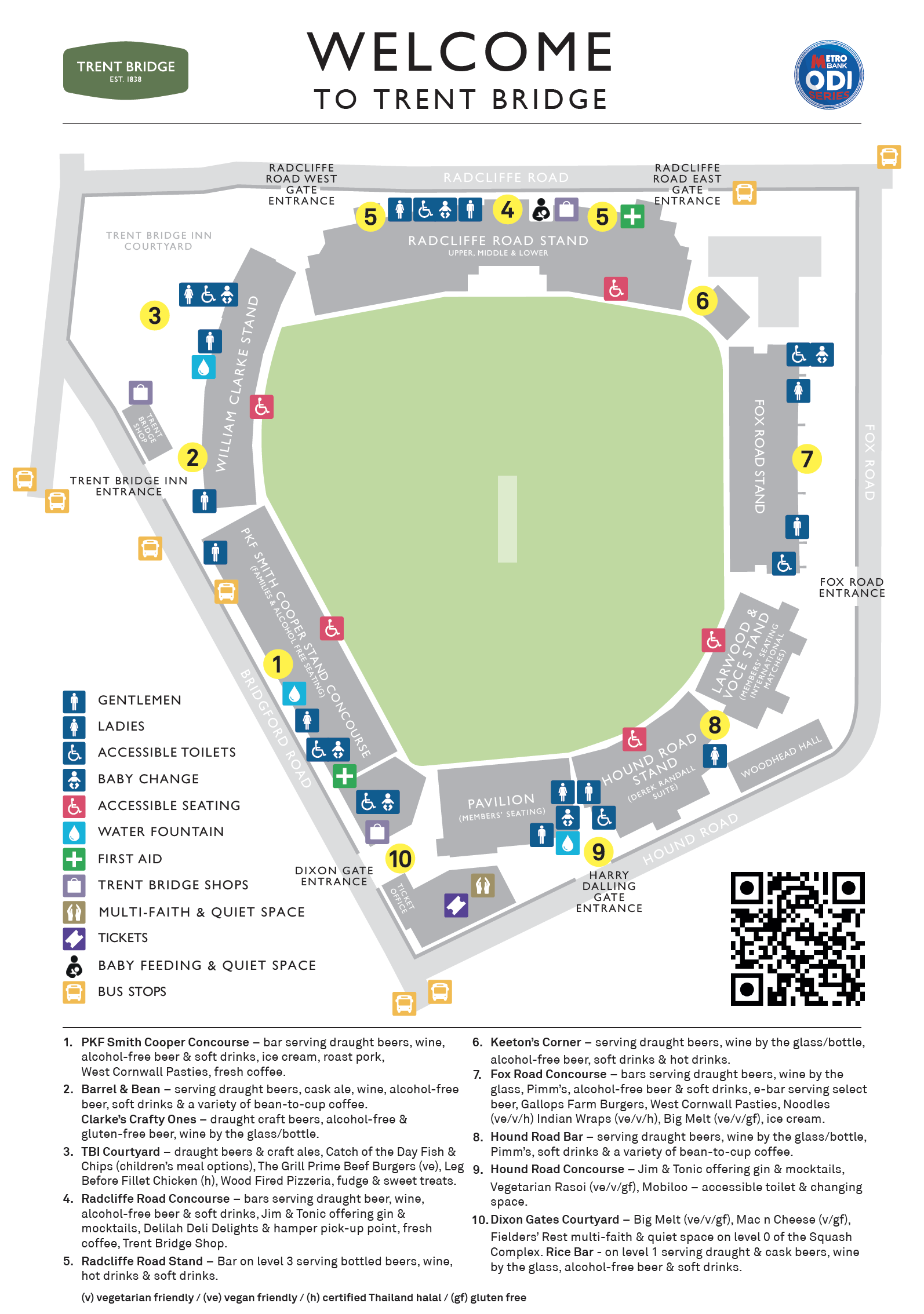 A limited number of Trent Bridge sensory bags will be available to borrow for the duration of the match, which can be collected from the Radcliffe Road Reception.