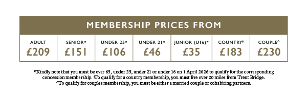 Memberships can be secured by visiting tickets.trentbridge.co.uk, or by calling our friendly ticket office team on 0115 899 0300.