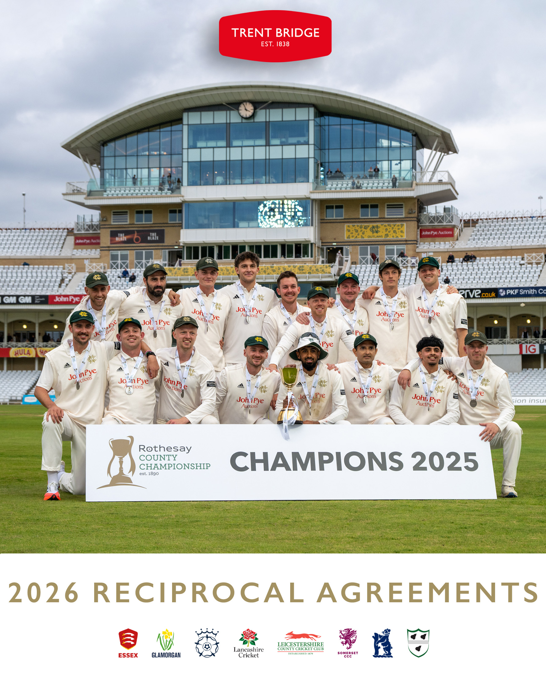 With the only exception being when Notts are the visitors, valid Trent Bridge membership cards for 2026 will grant free entry to County Championship cricket at eight other counties.