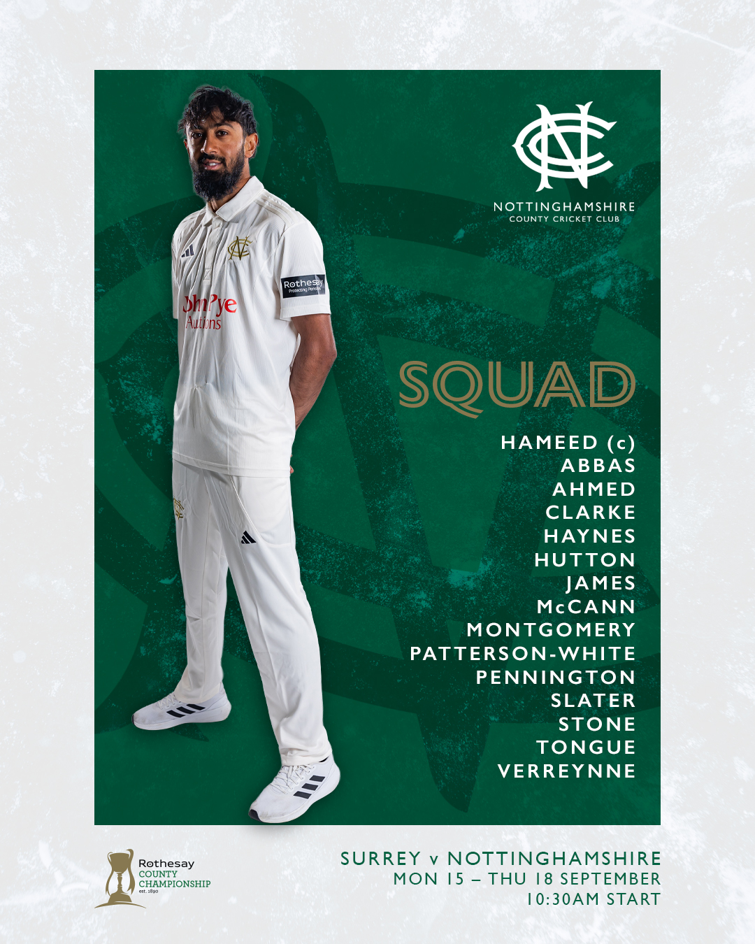 Hameed leads a squad of 15 for the season-defining showdown, with Olly Stone recalled from his loan to Middlesex to join the group.