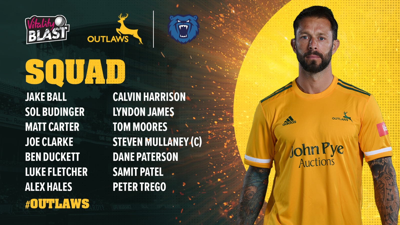 The Outlaws have named an unchanged squad of 14 following Wednesday’s tied fixture on the road against Worcestershire Rapids.