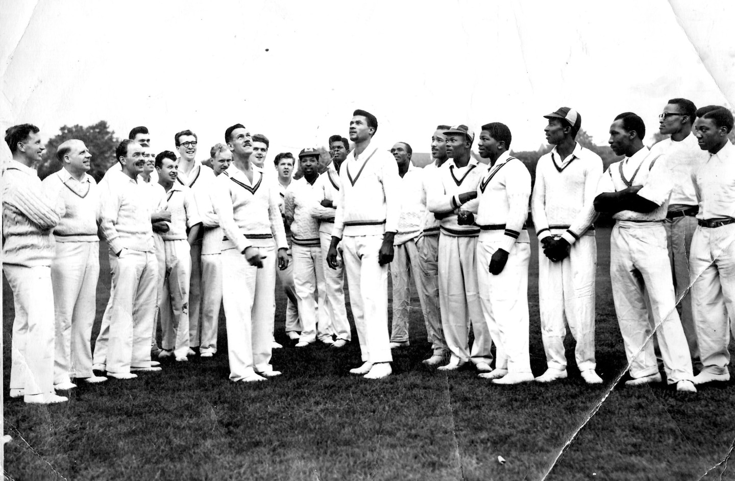 Note: the photograph shows the toss before the 1958 match between the Caribs and the Notts Cricket Association. If anyone can name any of the NCA players, please let the Heritage team at Trent Bridge know: heritage@trentbridge.co.uk .